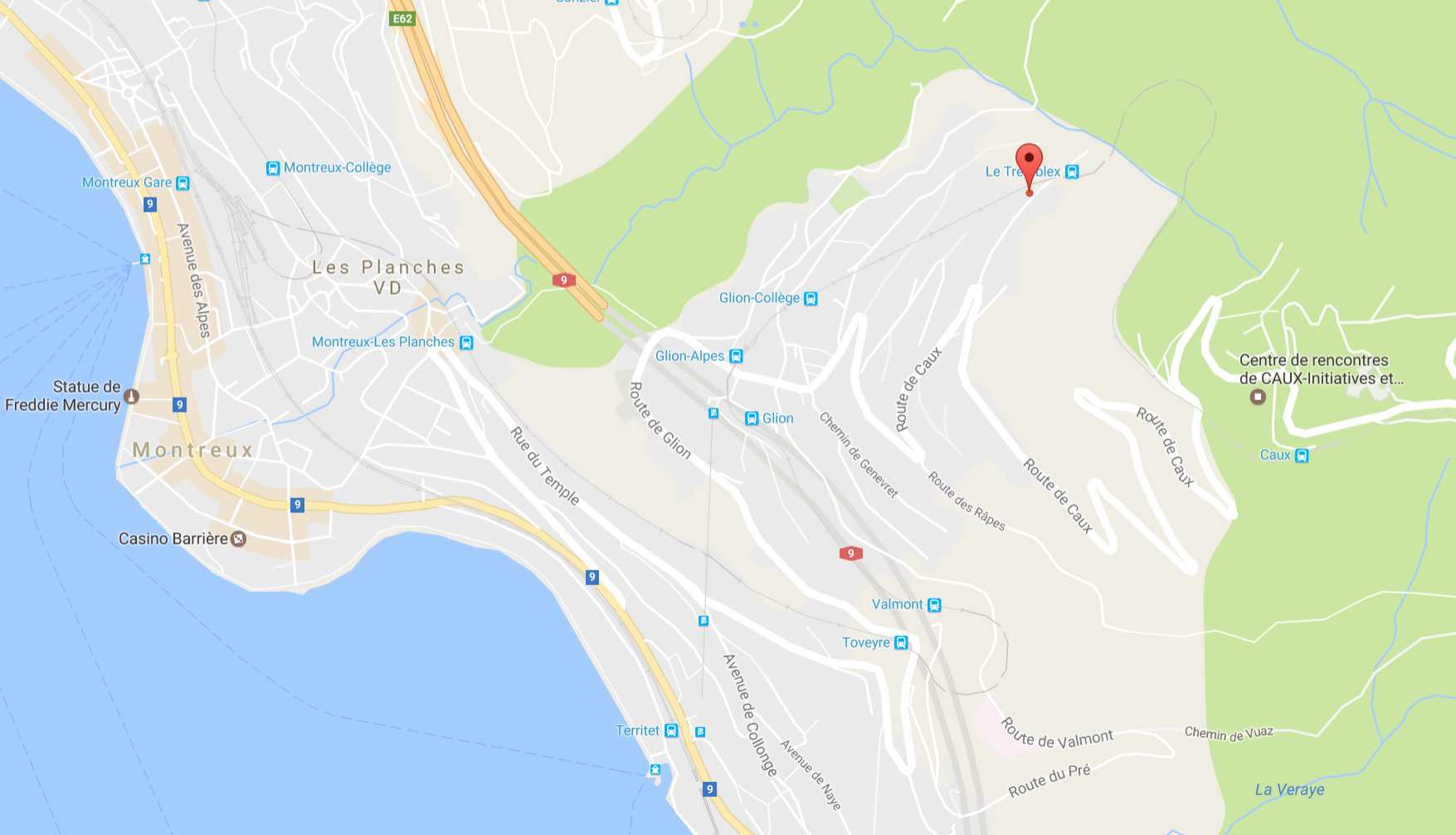 In Glion: Dorf durchfahren, vom Dorf Ende (Schulhaus), bis dritte Haarnadelkurve fahren, in der dritten Haarnadelkurve links in den Chemin de la Halte du Tremblex einbiegen, Spiegel beachten! Letztes Haus unten links. Garage rechts.